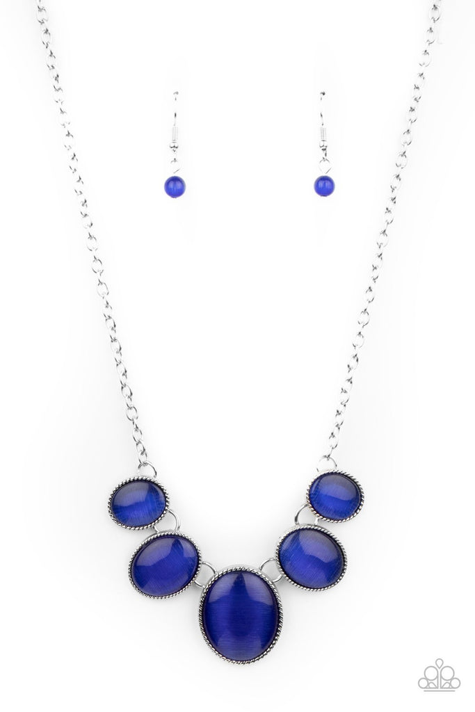 Gradually increasing in size, a dainty collection of glowing blue cat's eye oval stones delicately link below the collar for a whimsical pop of color. Features an adjustable clasp closure.