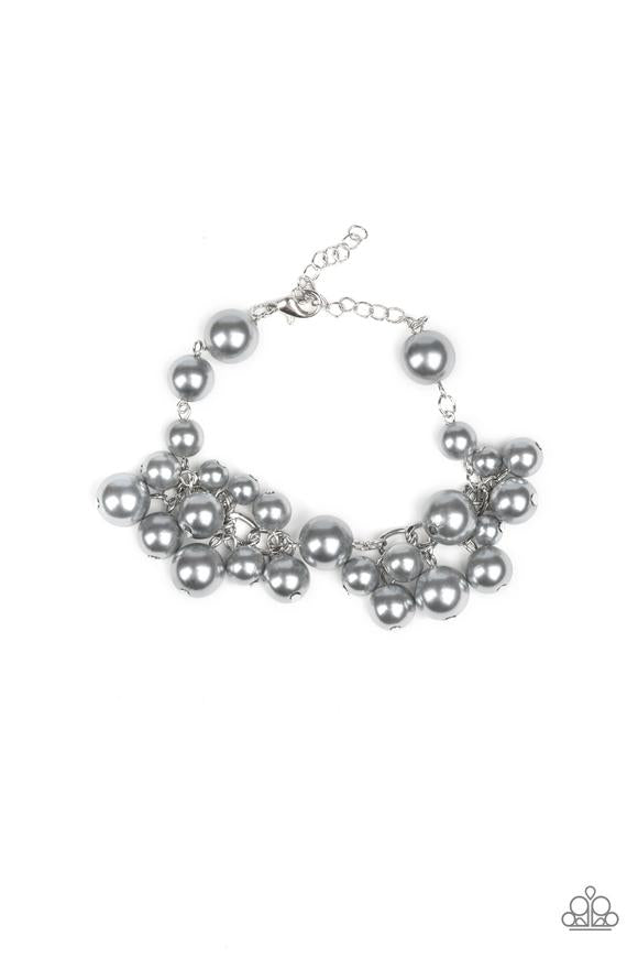 Clusters of classic and oversized silver pearls swing from a pearl beaded silver chain, creating a fabulous fringe. Features an adjustable clasp closure.