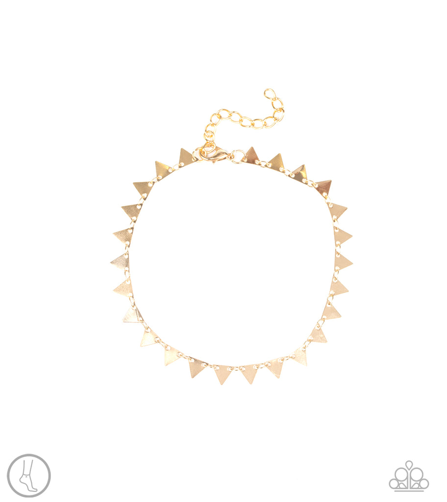 Dainty gold triangular frames link around the ankle for an edgy, minimalist inspired look. Features an adjustable clasp closure.
