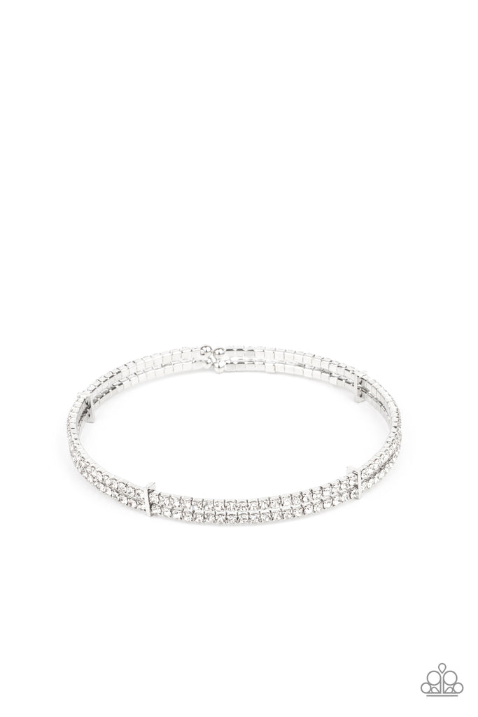 Held together with dainty silver fittings, two glittery strands of white rhinestones delicately curl around the wrist for a timeless finish.