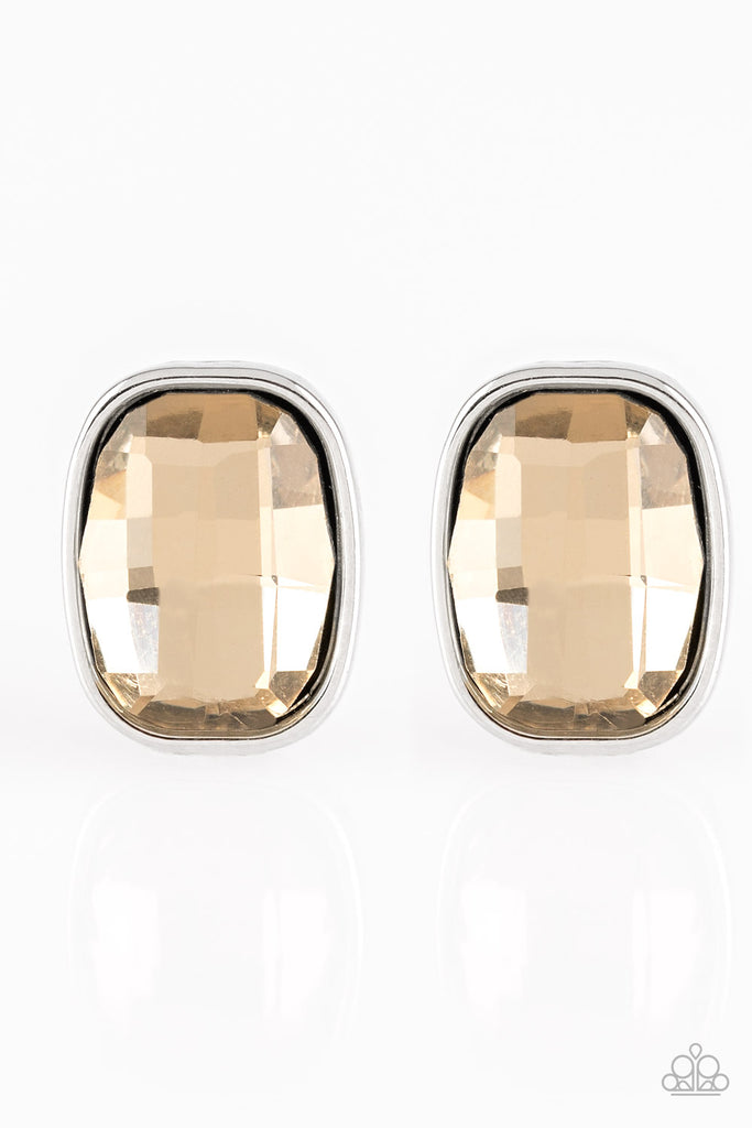 A faceted gem is pressed into a sleek silver frame for a glamorous look. Earring attaches to a standard post fitting.